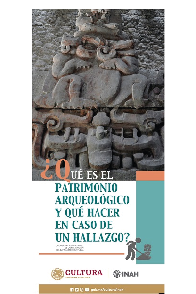 El folleto explica que, ante un hallazgo arqueológico, es importante no mover ni limpiar la pieza y avisar de inmediato al INAH o a las autoridades locales para preservar la información de la pieza. Además, aclara que los bienes arqueológicos son propiedad de la Nación Mexicana, y aunque pueden poseerse si están registrados ante el INAH, su búsqueda sin permiso es ilegal.